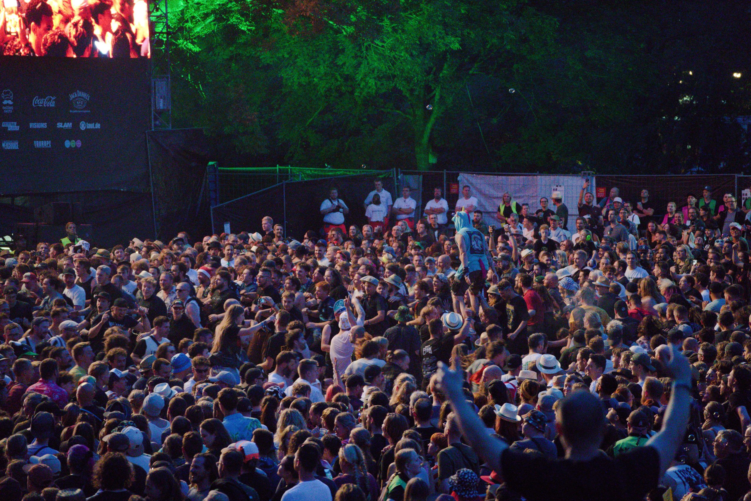 Neben Acts wie Raum27, Paula Carolina und Kasi lag dann der Fokus am Abend auf der Main Stage. Die australische Hip-Hop-Band Hilltop Hoods sorgte für ordentlich Stimmung, bevor Enter Shikari die Menge mit ihrem basslastigen Sound fesselte, in welchem die Stimme leider etwas unter ging (kleiner Rüffel an den bandeigenen Tontechniker). Die Performance war trotzdem wirklich stark und man muss einfach sagen, dass Frontmann Roughton „Rou“ Reynolds enorm viel Energie hat und ununterbrochen über die Bühne wuselt.